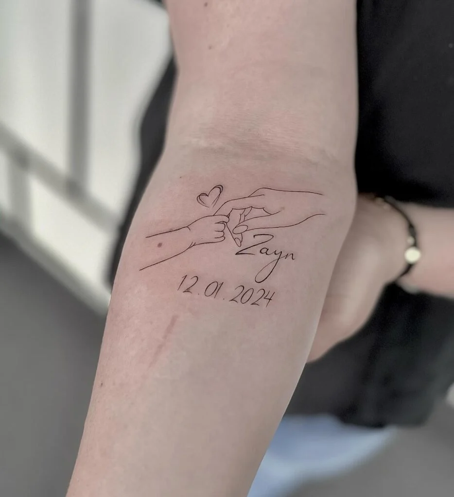 Together, these elements create a minimalist yet deeply emotional design. It’s a subtle and timeless way to celebrate the birth of a child—perfect for anyone who values simplicity with heartfelt meaning in their body art.