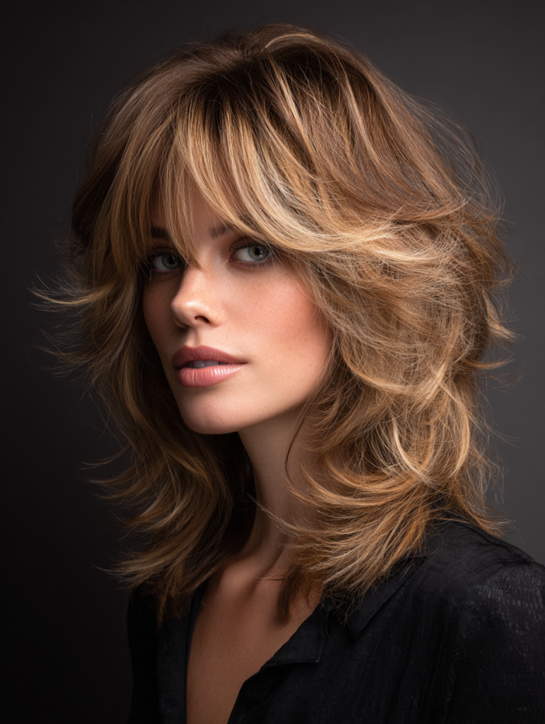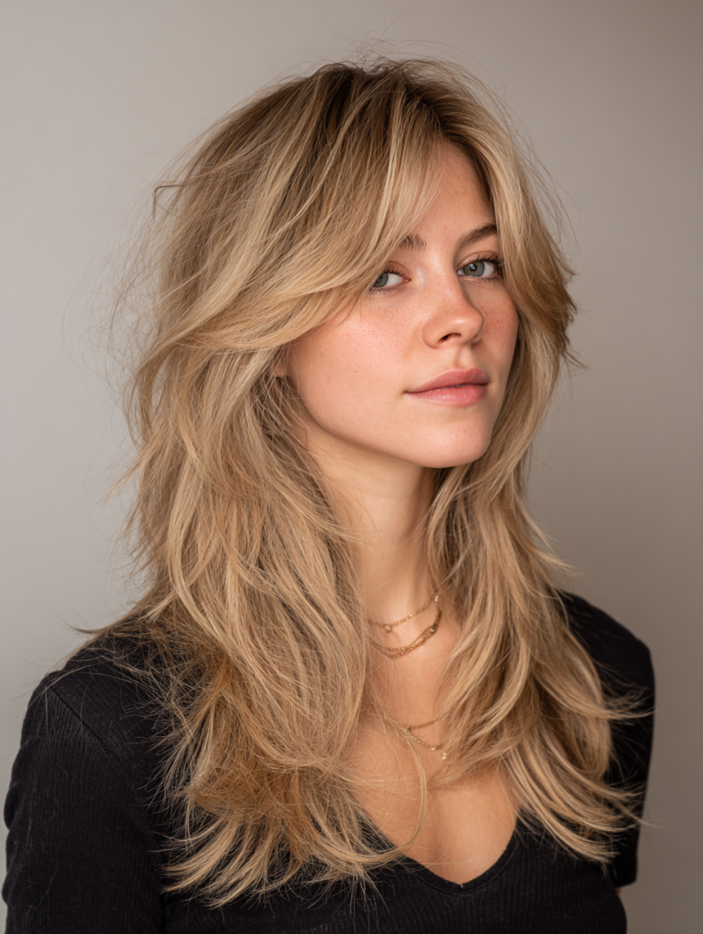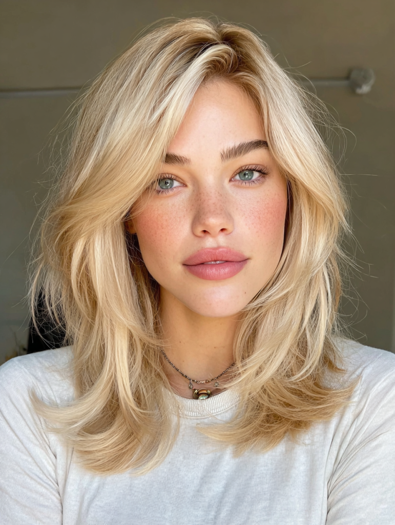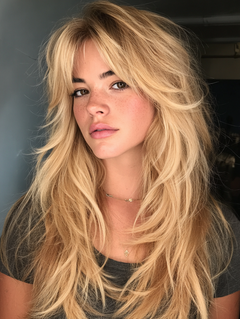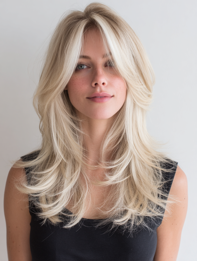 Styling often requires very little effort, since the layers naturally fall into shape. A touch of volumizing spray near the roots helps maintain lift, allowing the buttery color to showcase each flowing layer beautifully.