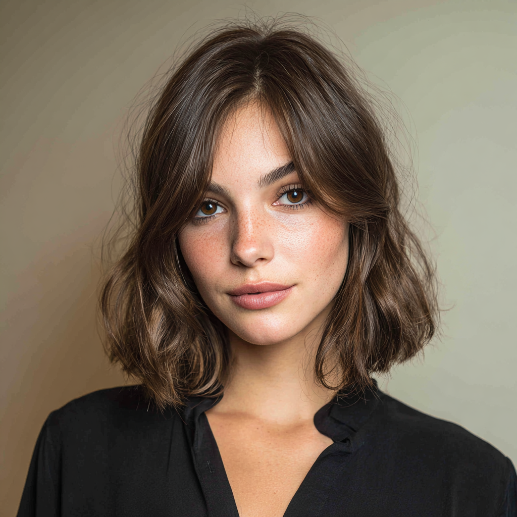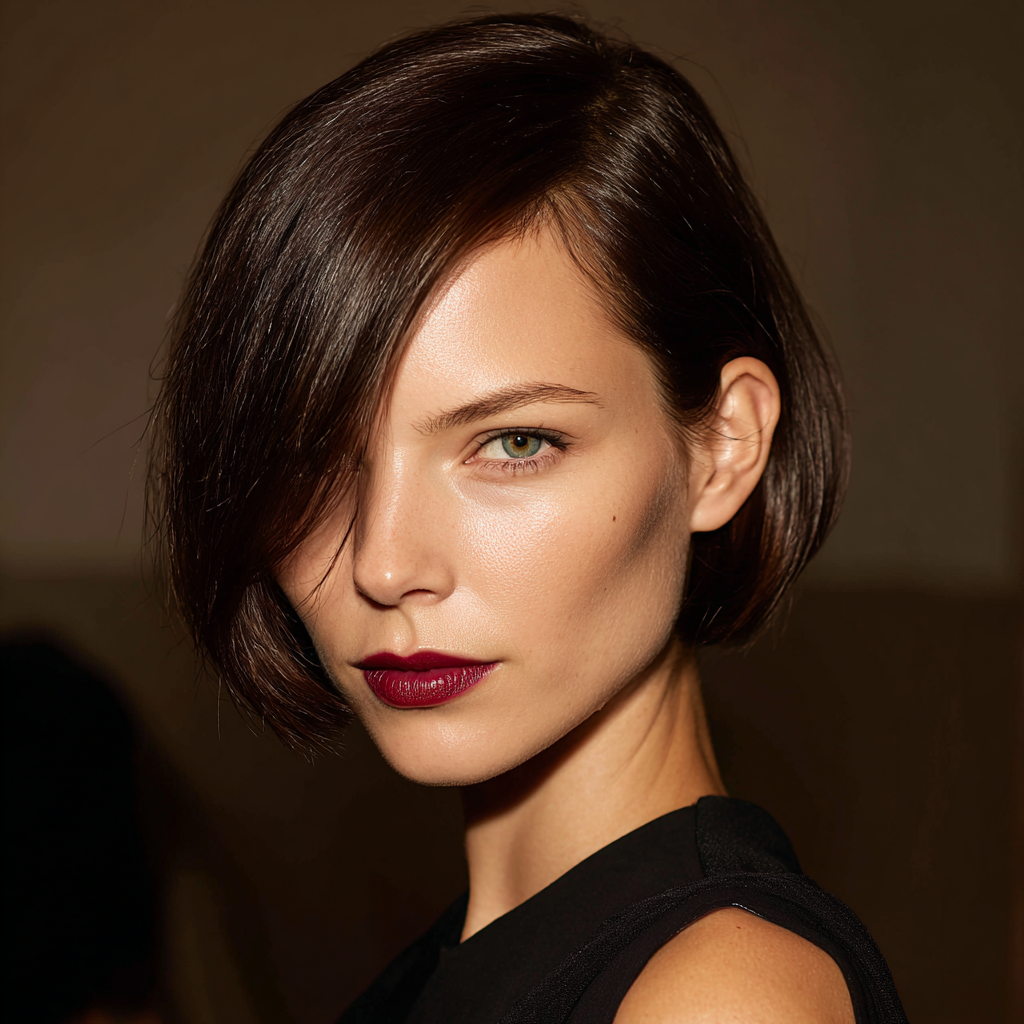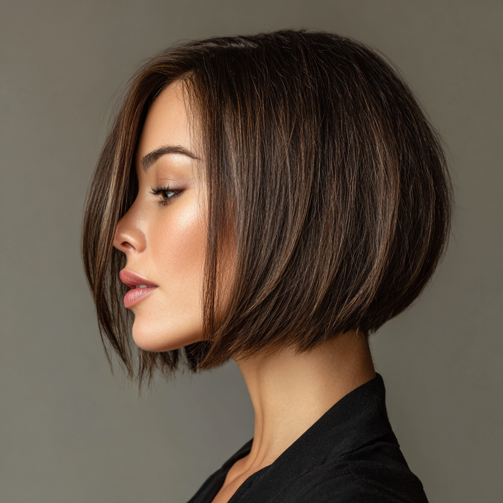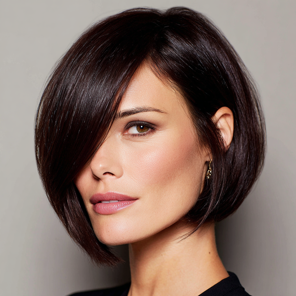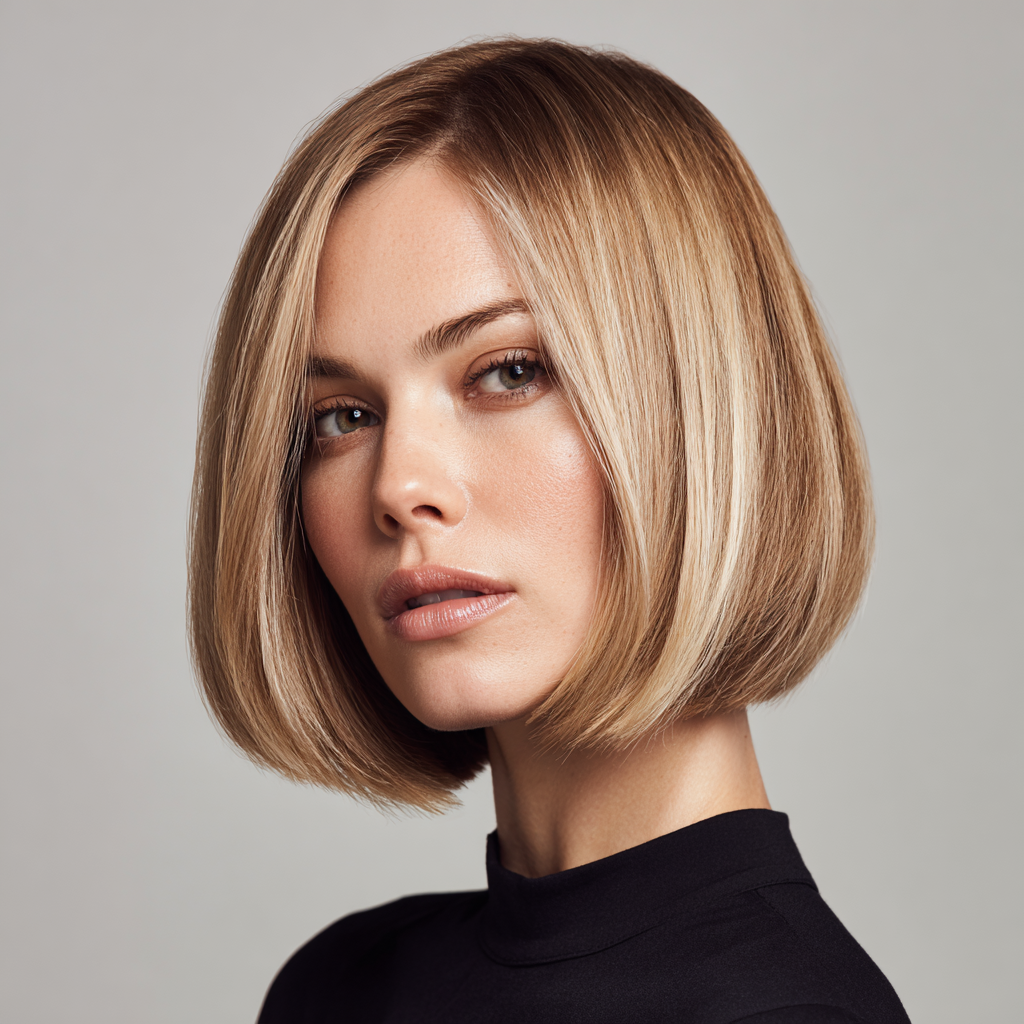 Longer front pieces frame the face and pull attention downward. That helps reduce the appearance of cheek width. A slight bend at the ends adds softness without puffiness. This bob fits people who want definition but still want flexibility. It works for both polished looks and relaxed styling.