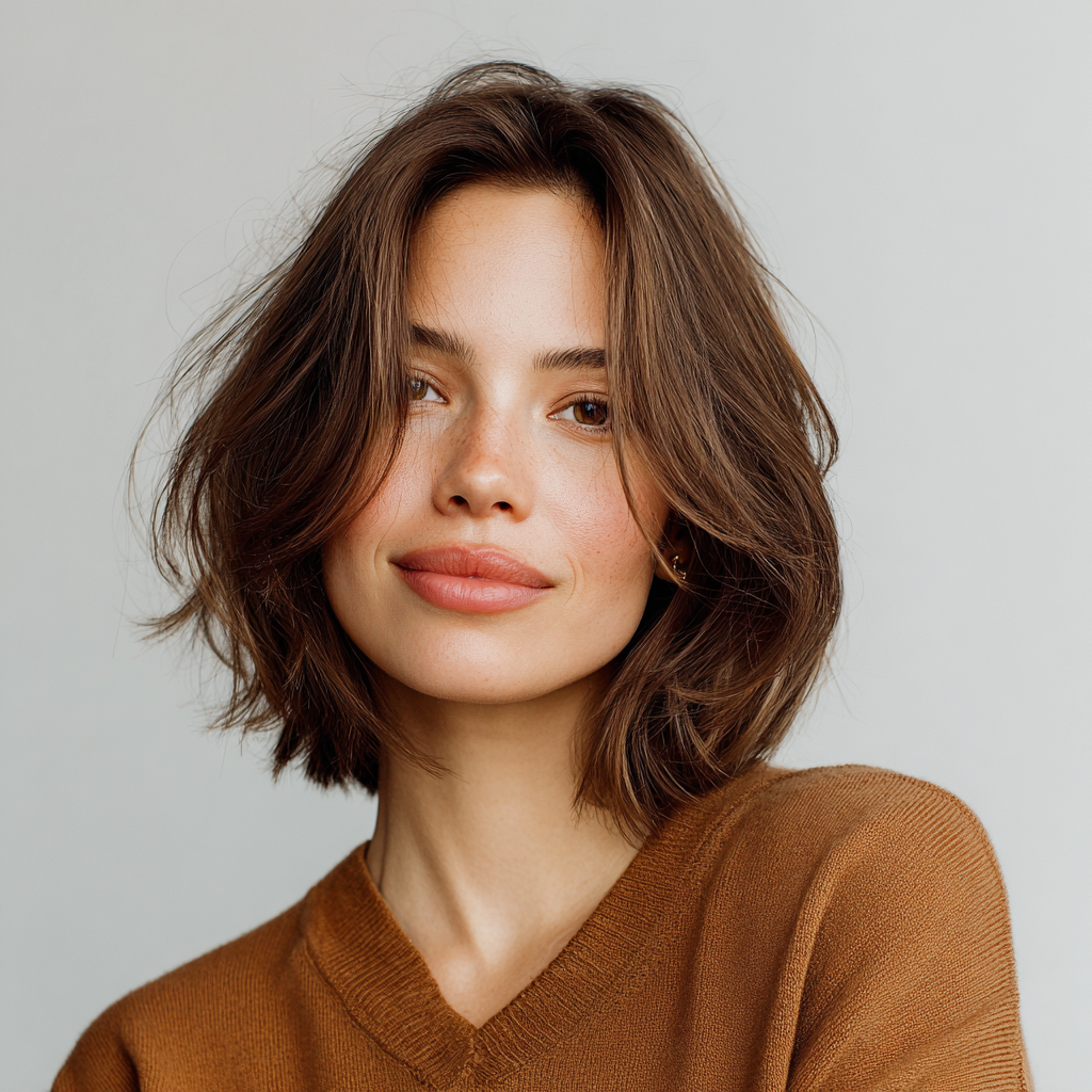 Bob haircuts for round faces work because they shift attention downward and vertically. Length that hits below the chin helps stretch the face visually. Angles, layers, and movement break up fullness at the cheeks. Instead of emphasizing width, the right bob creates structure. That structure gives the face a more defined outline without looking harsh or forced.