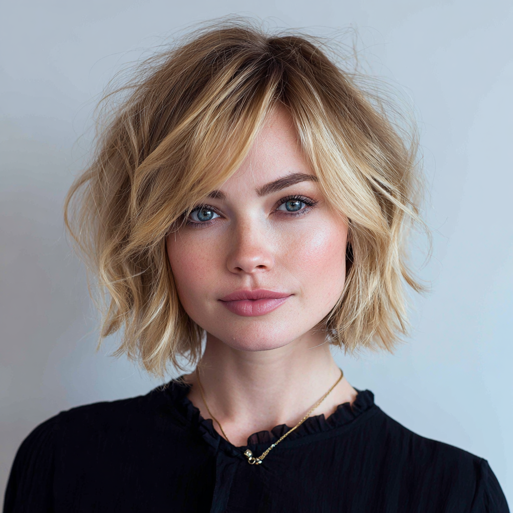 A textured bob focuses on broken ends and soft separation. This prevents the hair from sitting flat against the face. It works especially well for fine hair that needs lift. The cut looks relaxed but still controlled. Styling usually takes minutes, not hours.