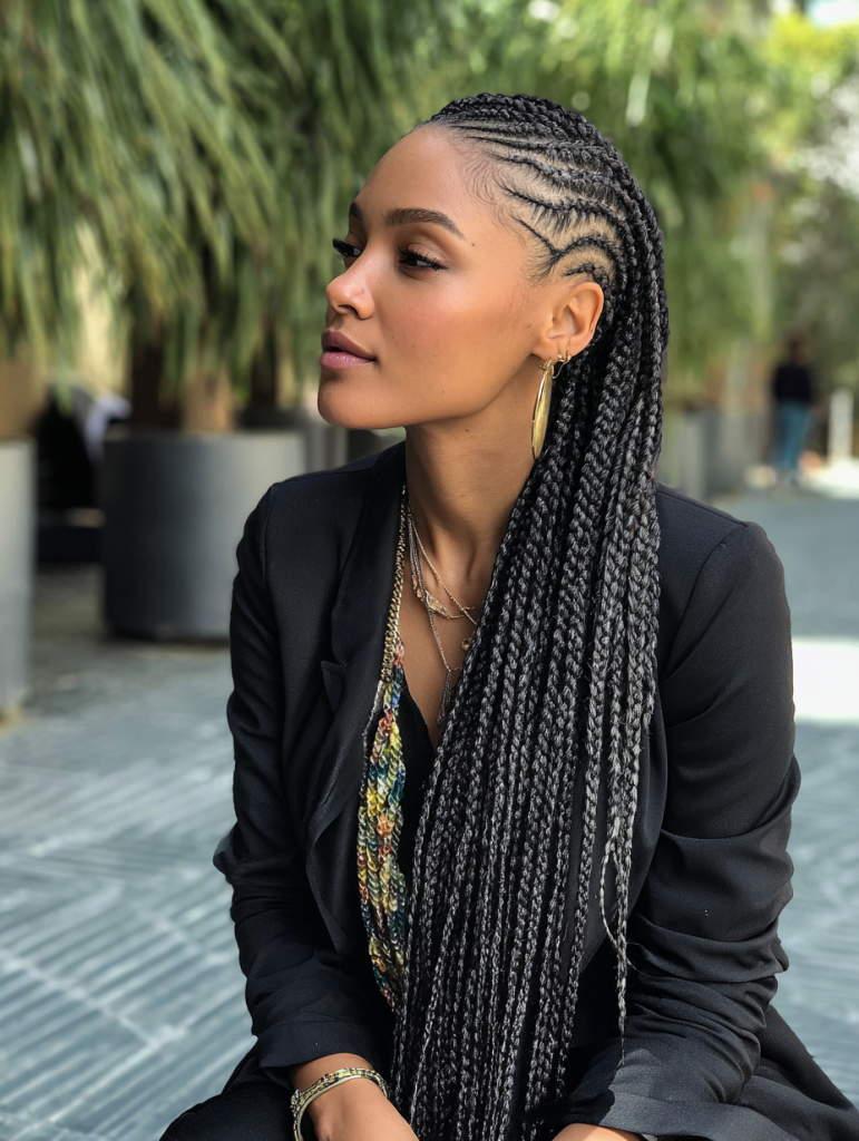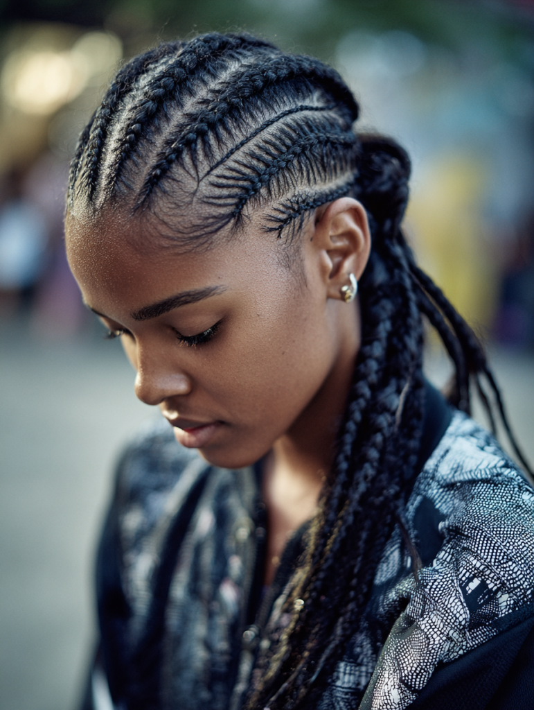 It’s ideal for active lifestyles because it keeps hair secure and manageable for extended periods. Cornrows can be worn alone or used as a base for other styles like wigs or extensions. The result is always neat, practical, and visually striking.