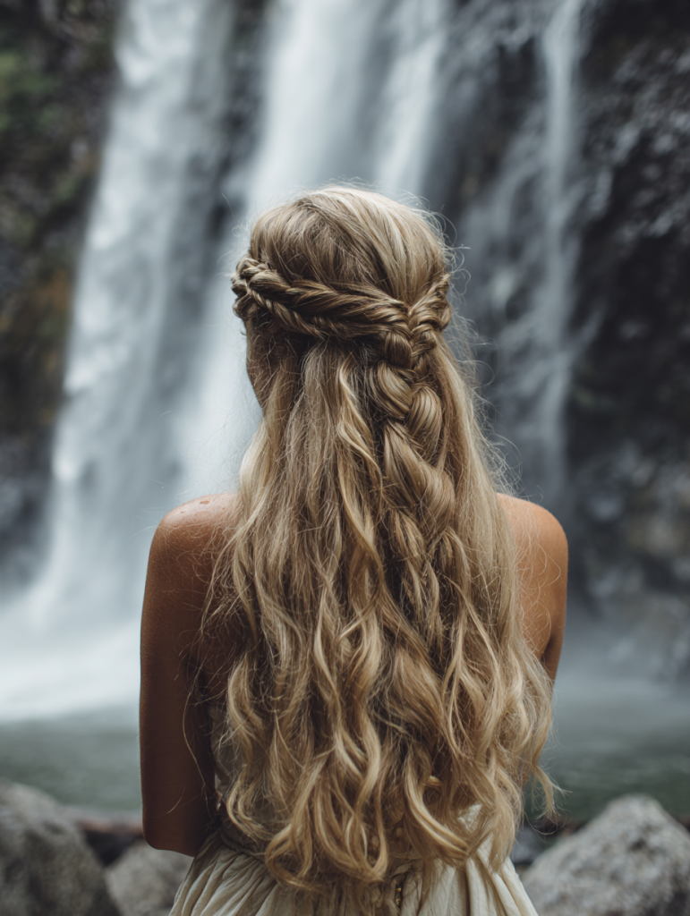 A waterfall braid creates a soft, cascading effect that feels romantic and effortlessly stylish for many occasions. Instead of weaving all sections through, strands are dropped to fall naturally, forming a flowing pattern.