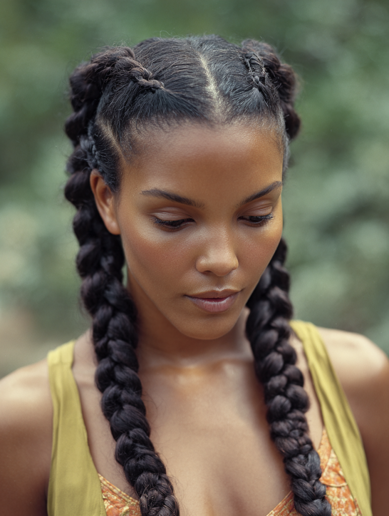 Goddess braids are thicker, more defined versions of cornrows that create a bold and elegant statement. Their larger size makes them quicker to install while still offering a protective styling option. This hairstyle works beautifully for both everyday wear and more dressed-up moments.
