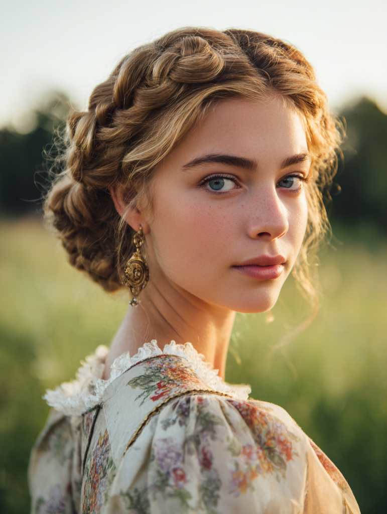 Milkmaid braids wrap across the top of the head, creating a vintage-inspired look that feels both sweet and structured. This style keeps hair secure while offering a soft, feminine finish that suits many occasions. It works best on medium to long hair and can be adjusted for a tighter or more relaxed appearance.