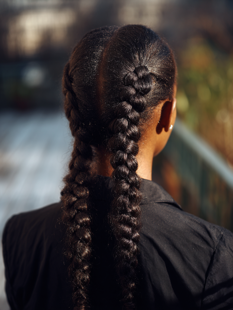 Dutch braids follow a similar pattern to French braids but sit raised above the scalp. The woven sections pop outward, creating bold definition and texture. The style looks structured yet sporty.