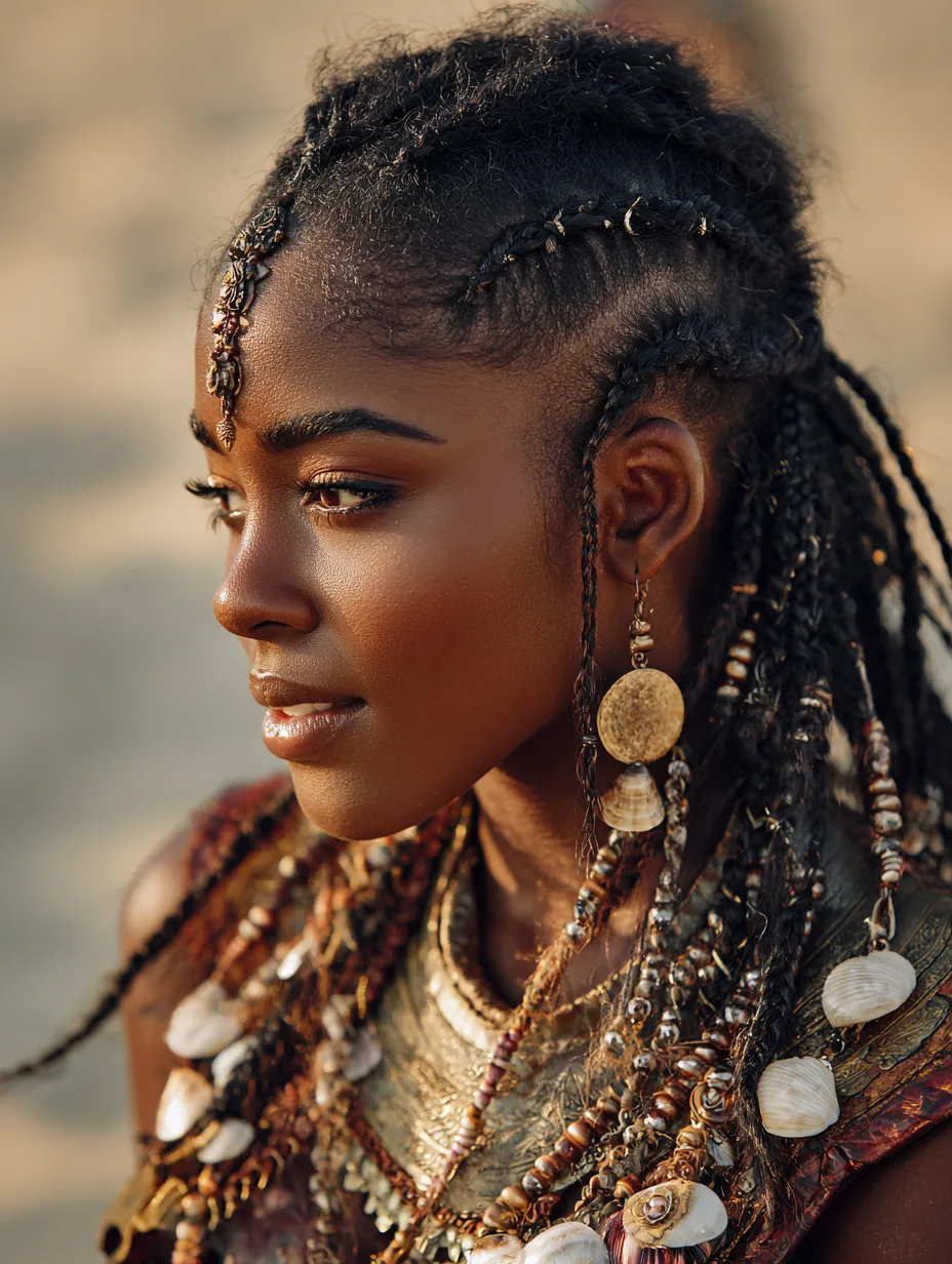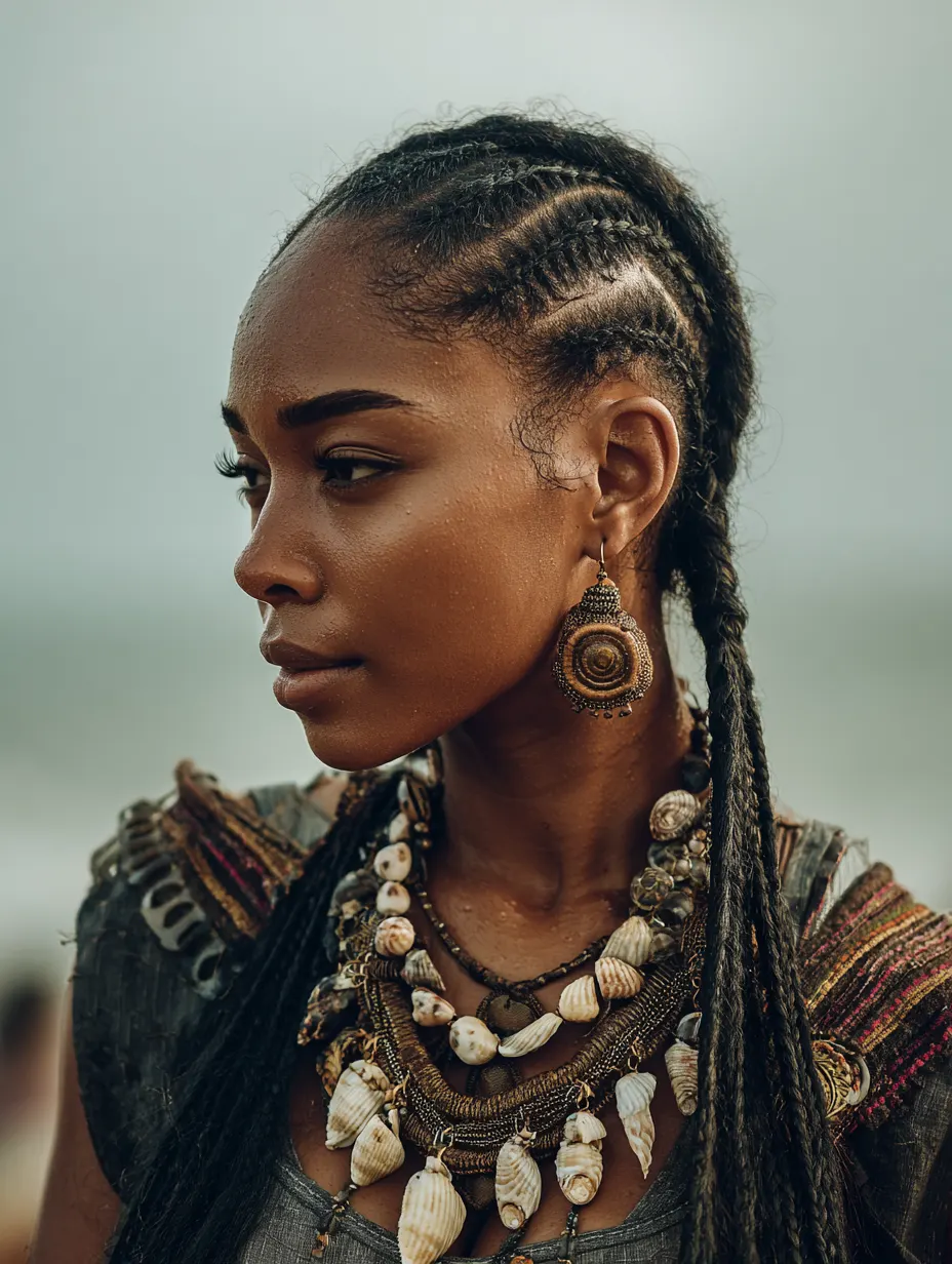 Fulani braids blend feed-in cornrows with loose braids. You often see a braided middle line and side braids decorated with beads. They celebrate heritage and creativity. Fulani braids suit heart-shaped and oval faces because they naturally highlight cheekbones. The face-framing braids soften and lengthen facial features.