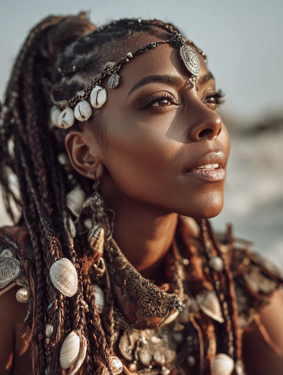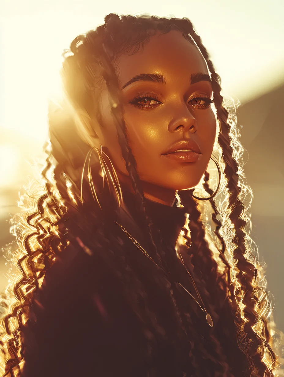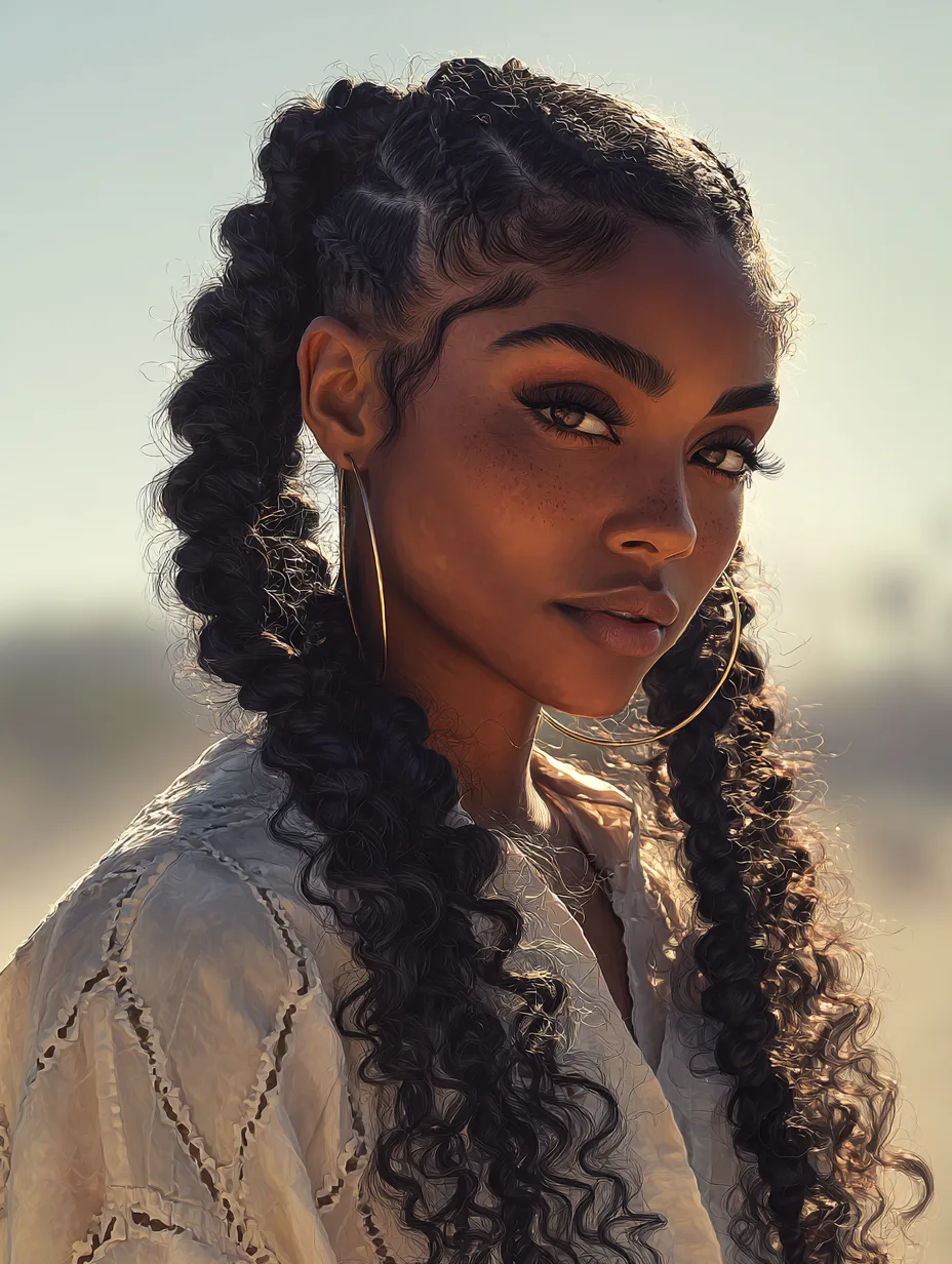 Goddess braids add loose curls or wavy ends to the traditional braided pattern. They offer romance and softness while still providing a protective foundation. They work especially well on women with coily or medium-density hair because the curls create volume without heavy weight. Oval and long faces benefit from the added texture around the jawline.