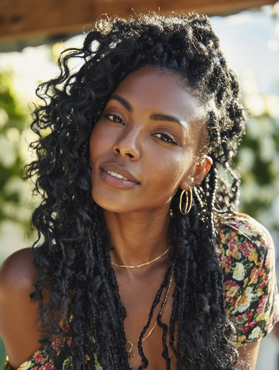 Bohemian braids mix braids with curly pieces that peek out for texture. They give movement and a lived-in feel while still being protective. Round and heart-shaped faces benefit because curls create softness near the cheeks. You can make them long, short, or medium depending on your comfort.