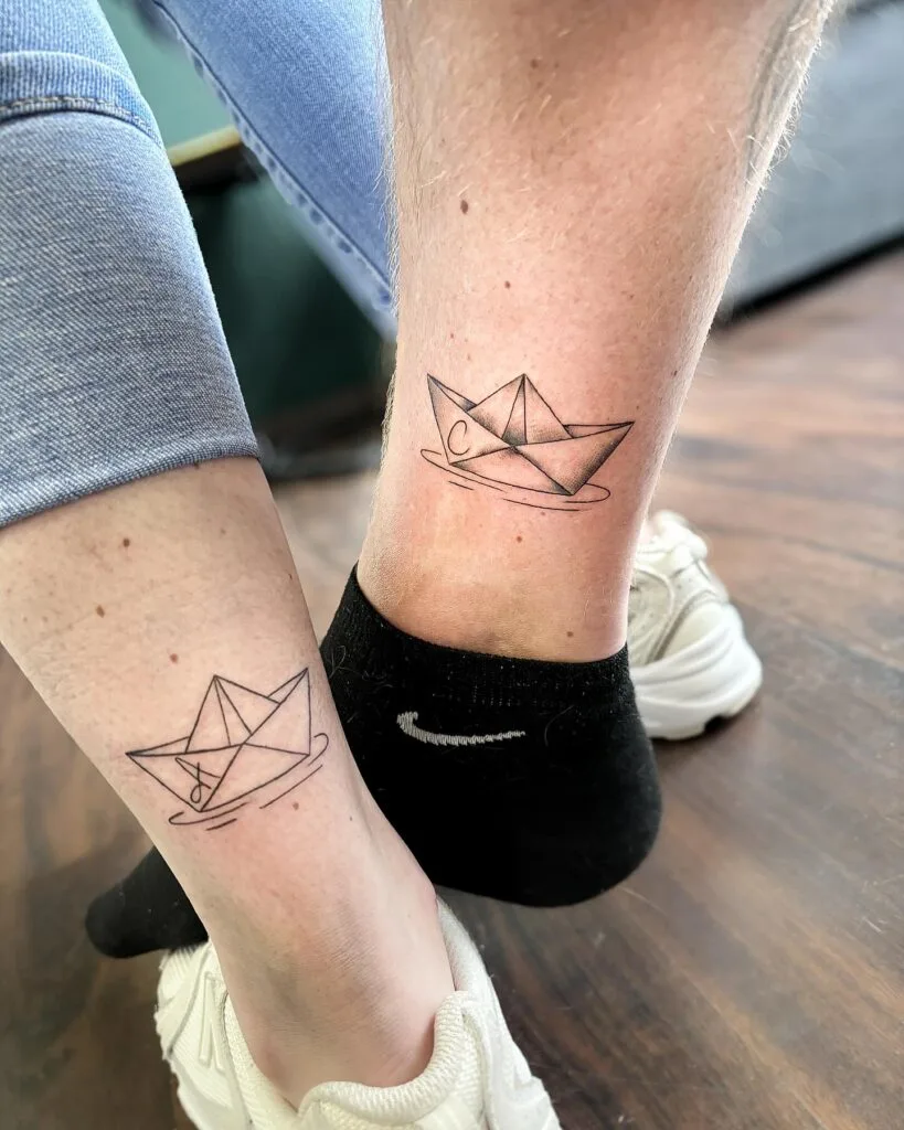 Matching Paper Boat Sibling Tattoos