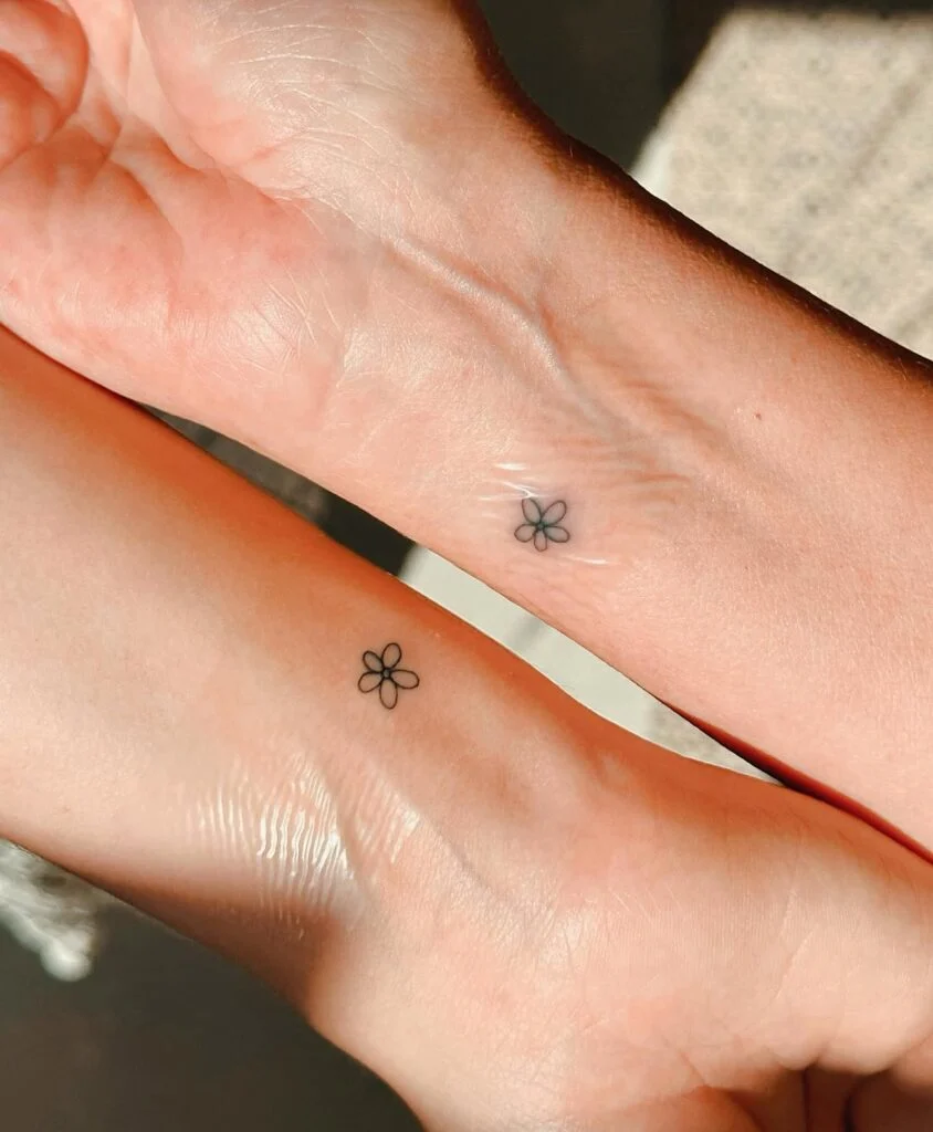 Tiny Matching Flower Wrist Tattoo