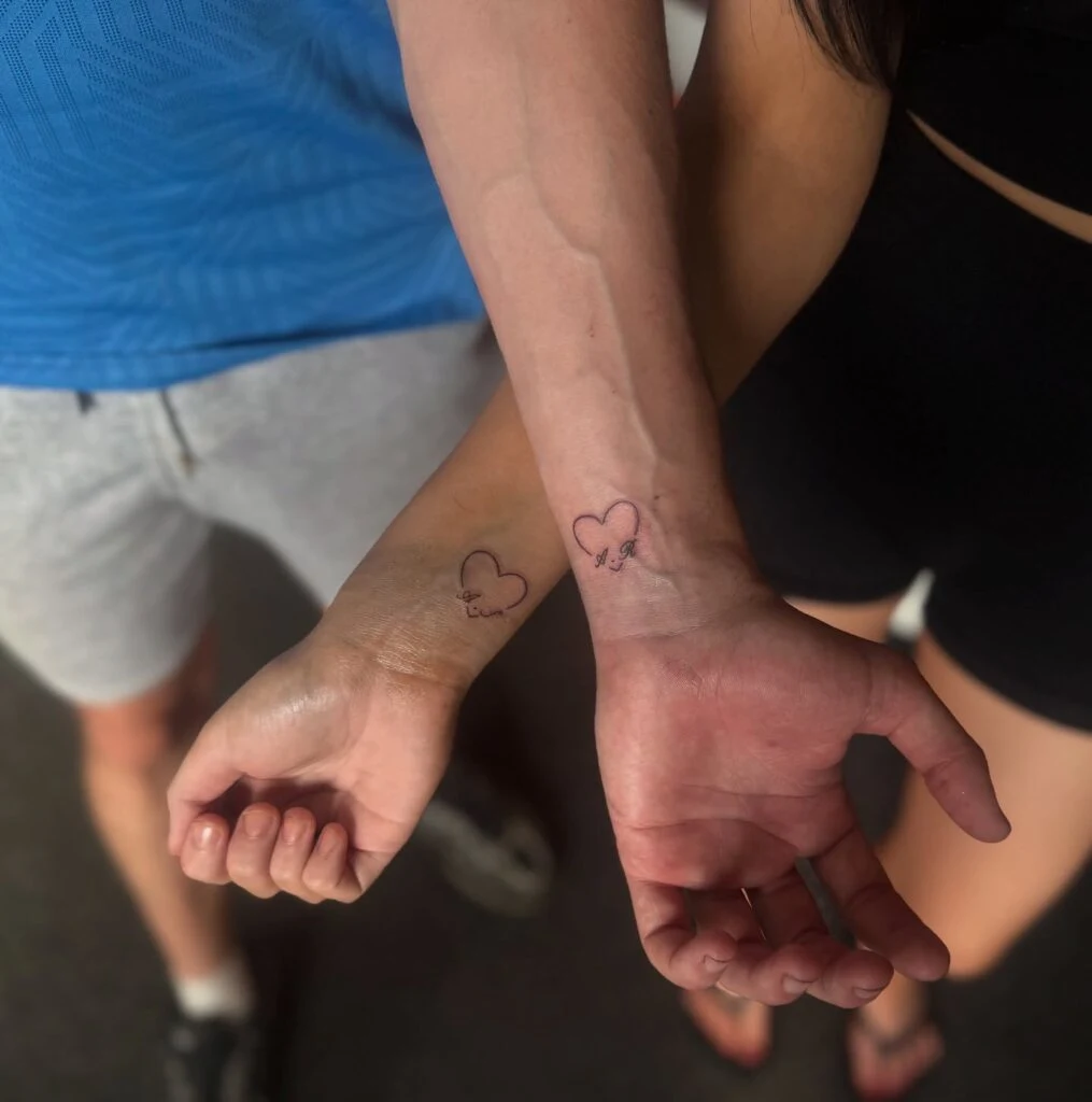 The understated style is perfect for couples who appreciate quiet elegance and want something deeply meaningful yet subtle. Positioned on the wrist, the tattoos are always visible—serving as a constant reminder of love, friendship, and the special bond they share every day.