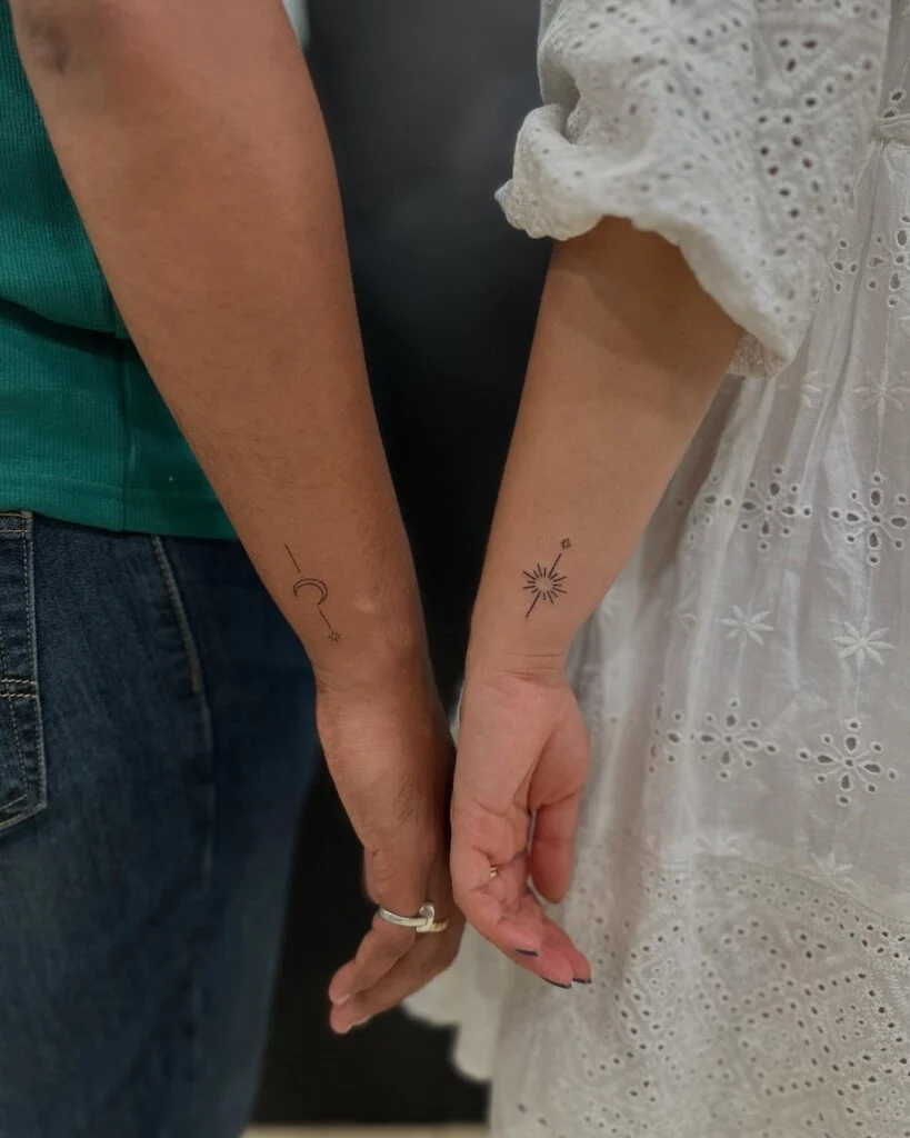 Some couples opt for minimalist line art, while others choose symbolic imagery like lock and key, sun and moon, or dates in Roman numerals. Whether bold or subtle, these tattoos represent a unique connection and a promise etched in ink. It’s a beautiful reminder of a bond meant to last a lifetime.