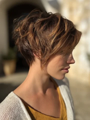 Sun kissed brunette hair blends natural brown depth with soft, warm highlights that mimic time spent in the sun. The goal is subtle brightness, not dramatic contrast. Lighter pieces usually sit around the face and through the mid-lengths to create dimension and glow. This color works across many lengths and textures because it enhances movement …