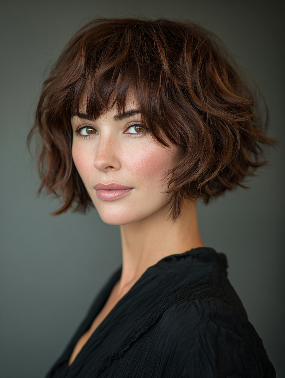 Textured Short Layered Bob With Wispy Bangs