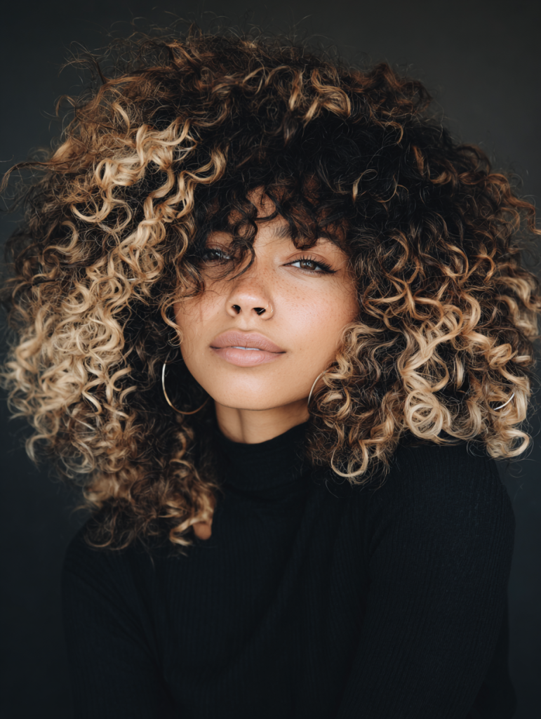 Diffused curls showcase the color beautifully, but even simple air-dry styling looks impressive. Because curls already have movement, the bold color placement feels dynamic and full of energy rather than overly graphic.